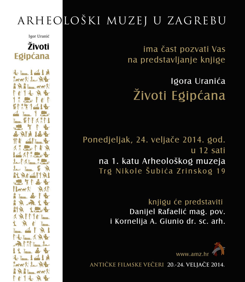 predstavljanje knjige Životi Egipćana autora Igora Uranića, egiptologa i muzejskog savjetnika.