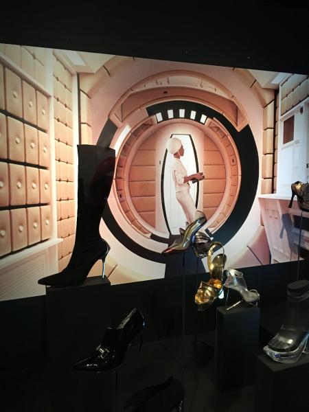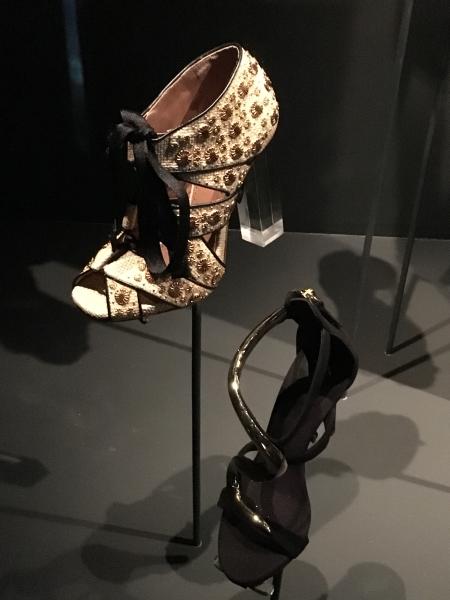 Dizajnerski radovi izmiješani su i u tematskim pregledima… barok, folklor, svemirsko doba, surealizam, dvorana za plesanje, priroda, fetiš i sl., gdje nas potonji, između ostalog vodi u svijet crvenih potplata Christiana Louboutina. Na izložbi se mogu vidjeti plodovi suradnje dizajnera s Davidom Lynchom, odnosno cipele koje je izradio za njegovu kultnu seriju fetišističkih fotografija.