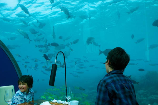 Ithaa Restoran se nalazi ispod 15 metara ispod valova Indijskog oceana, okružen koraljnim grebenom, te nudi večere sa 270 stupnjeva panoramskim pogledom na more.
