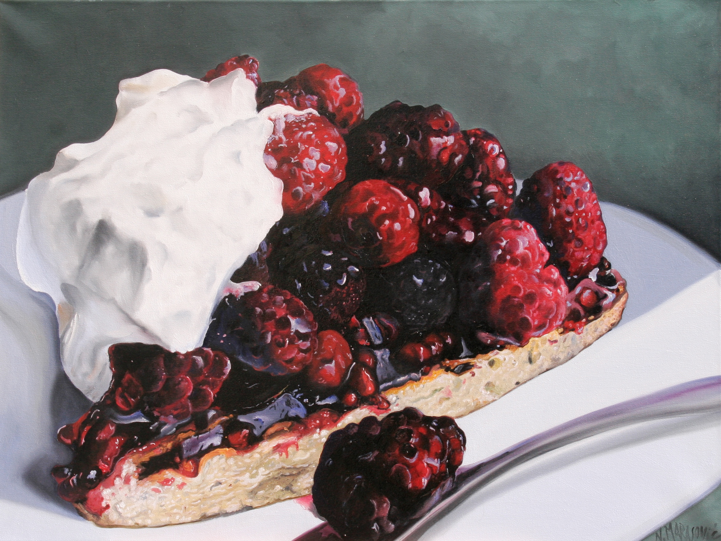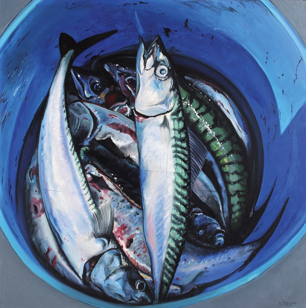 S druge strane, sočne kriške torti evociraju opsesiju pop-artista konfekcioniranom i uopće industrijski ili manufakturno proizvedenom hranom šezdesetih godina 20. stoljeća. Kad slika ribe, jedan od omiljenih motiva žanra mrtvih priroda tijekom hrvatskog modernizma, a naglašeno kad ih prikazuje sirove, Marasovićeva izvedba otklanja se prema hiperrealizmu.