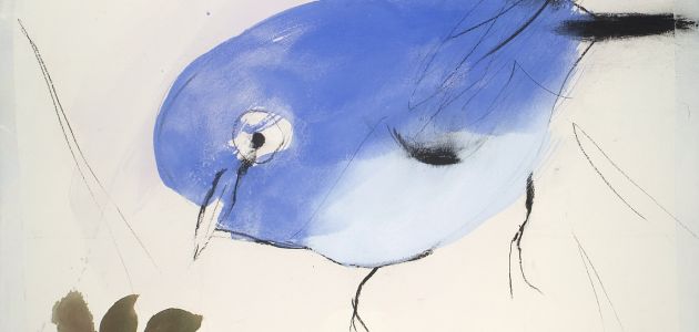 Željko Lesar motiv ptice oblikuje lakom i neopterećenom linijom u ugljenu, dok snažan akcent boje definira ključno psihološko značenje djela. Virtuozni crtež utjelovljuje nježan, eteričan, brz i poletan karakter ptice, dodatno istaknut slobodnim prostorom slike.
