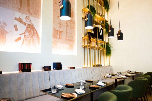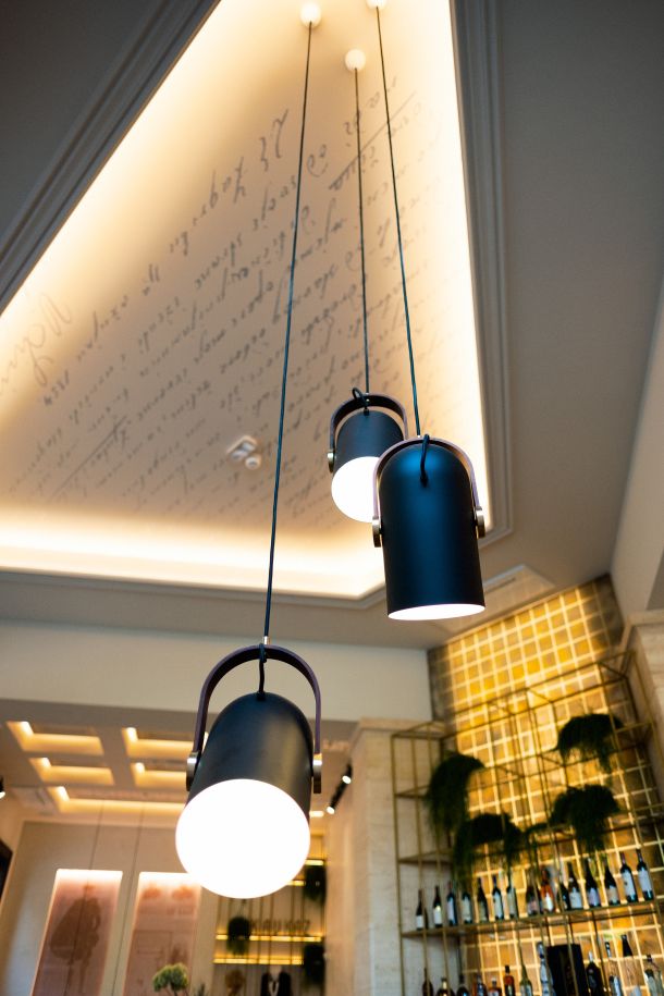 Posegnuvši za prvotnom koncepcijom cjelovitog kavanskog prostora, uspostavljanjem izoliranog galerijskog (namijenjenog pušačima) i podrumskog prostora, arhitektica se također referirala na Richterove okvire, dok rasvjetna tijela asociraju na kazališne reflektore.