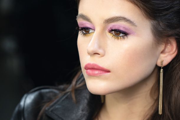 “Prljava” ljubičasta. Crni tuš. Dašak zlatnog. Kaia Gerber model je za look koji je kreirao Tom Pecheux za YSL Beauté kampanju, koristeći paletu Couture Colour Clutch Paris.