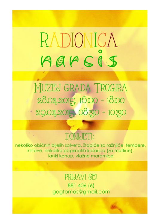Molimo sve zainteresirane sudionike da se prethodno prijave na broj telefona Muzeja grada Trogira 881 406 (birati 6 – muzejska pedagoginja) ili na e-mail gogtomas@gmail.com.