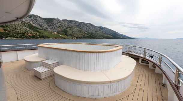 Prostrani salon i lounge te restoran u kojem se nude vrhunski specijaliteti i birana vina dio su komfora u kojem će se svatko začas opustiti, a na najvišoj palubi je vanjska terasa s opremljenim sunčalištem od čak 250 m2.