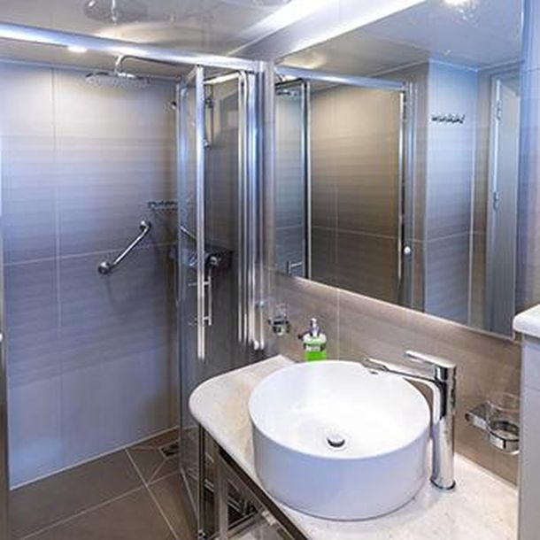 Svaka kabina ima kupaonicu, potrebne kozmetičke preparate, klima uređaje, plazmu TV, bežični internet, sef, te suvremene protupožarne i sigurnosne instalacije.