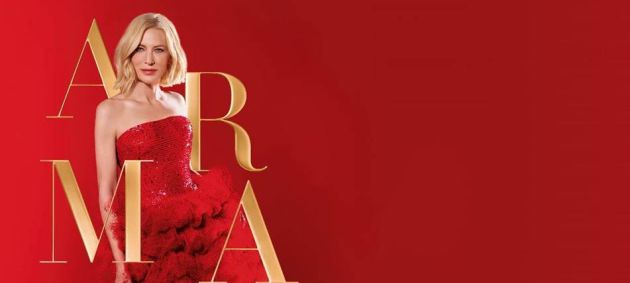 Istovremeno predstavljajući gracioznost i snagu, Cate Blanchett u kampanji nosi haljinu iz kolekcije Armani/Privé tamnocrvene boje, čiji je korzet ukrašen blistavim šljokicama, dok se suknja sastoji od slojeva tila. Cate se nalazi među velikim zlatnim slovima koja čine naziv „ARMANI”, a igra perspektiva dočarava zaigrani duh filma.