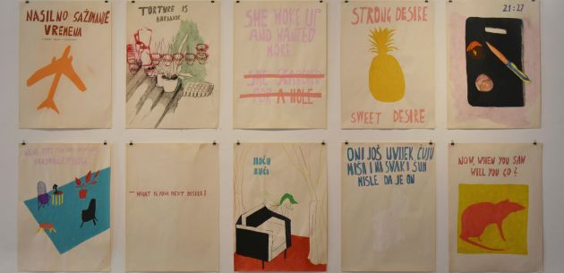 Postavljeni „neobavezno“ duž galerijskih zidova, ovi crteži (izvedeni svim crtačkim tehnikama: olovkom, ugljenom, pastelom, drvenim bojicama i flomasterom) stvaraju vlastiti ambijent koji proma- traču lako postaje blizak vizualnim načinom ali i samim pričama (recimo, o pantagani (štakoru) koji je kroz zahodsku školjku ušao u stan).