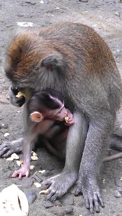 Stigosmo u Monkey forest. Iznenadili smo se da majmuni nisu agresivni.. Naime, čuli smo savjete da skinemo naočale, ne otvaramo torbe, ne dajemo im banane.. no kada smo ušli unutra svi su ih hranili (banane su se mogle kupiti) i samo oni koji su označeni crvenom bojom, mogu biti agresivni pa da se pričuvamo. Nisam kupila banane niti im prilazila. Nikad se ne zna. Otvorenih očiju gledala sam prekrasno đunglasto drveće.
