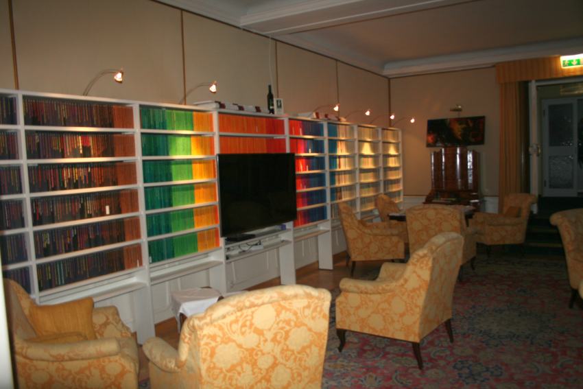 Tijekom odsjedanja gosti čitaju što god žele, na njemačkom za početak, jer je takvih knjiga za sada najviše (smijeh, op.u.). Sada nabavljamo i knjige na ostalim jezicima. Gosti pri svom boravku, pogotovo ako je on duži, vole jako čitati. Ono što je drugačije i što je također gostima zanimljivo jest da svatko donese jednu svoju knjigu, a odnesete jednu našu na odlasku. Tako knjiga svakoga od gostiju postaje dio biblioteke i ostaje kod nas. Uz donošenje knjige može se popiti i piće po izboru na unutarnjem baru uz klavir na kojem su svirali mnogi slavni umjetnici.