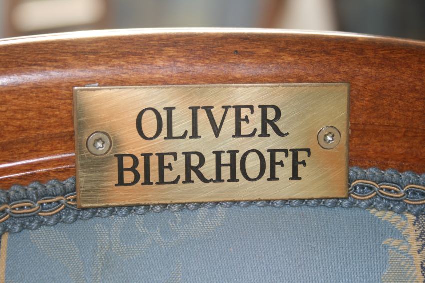 W: Izuzetno je zanimljiva blagavaonica vašeg hotela. Na svim stolicama stoji mjedena pločica s imenima poznatih, priznatih i slavnih gostiju. Možete li nam reći o čemu je riječ?