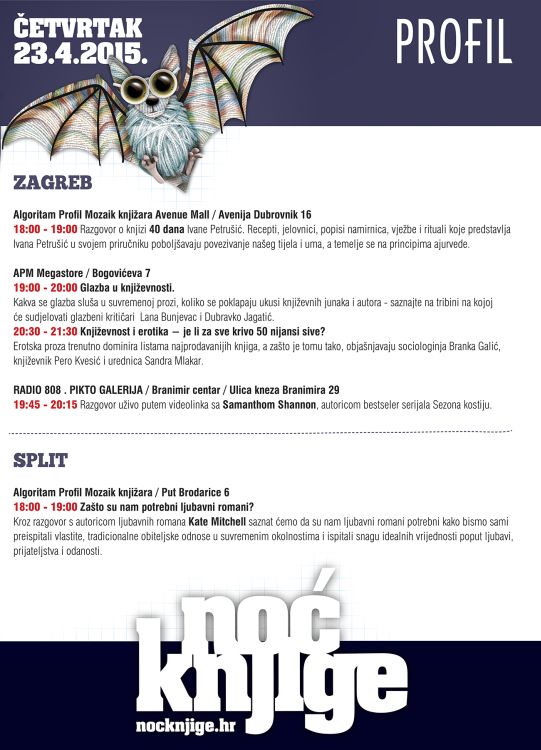 Raspored aktivnosti u povodu Noći knjige nakladničke kuće Profil Knjiga.