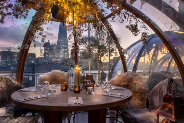 Zimska transformacija terase s najuzbudljivijim pogledom na stari London dizajneri su doveli do savršenstva. Idealan spoj odlične hrane i pogleda pronađen je u staklenim, ali grijanim, igluuima u kojima uz svjetlost svijeća možete uživati u društvu do 6 osoba dok ispijate vrhunski šampanjac Piper-Heidsieck iz vinograda francuske Champagne.