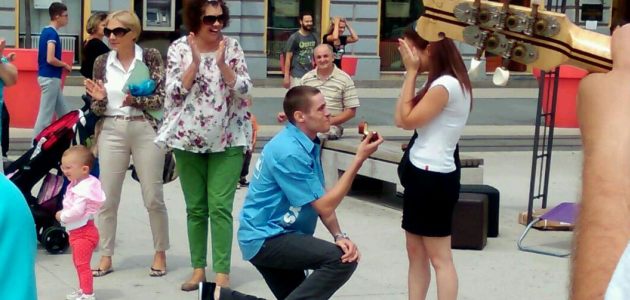 Matija je uz pomoć svojih kolega zaprosio djevojku na naromantičnijem trgu u Osijeku.