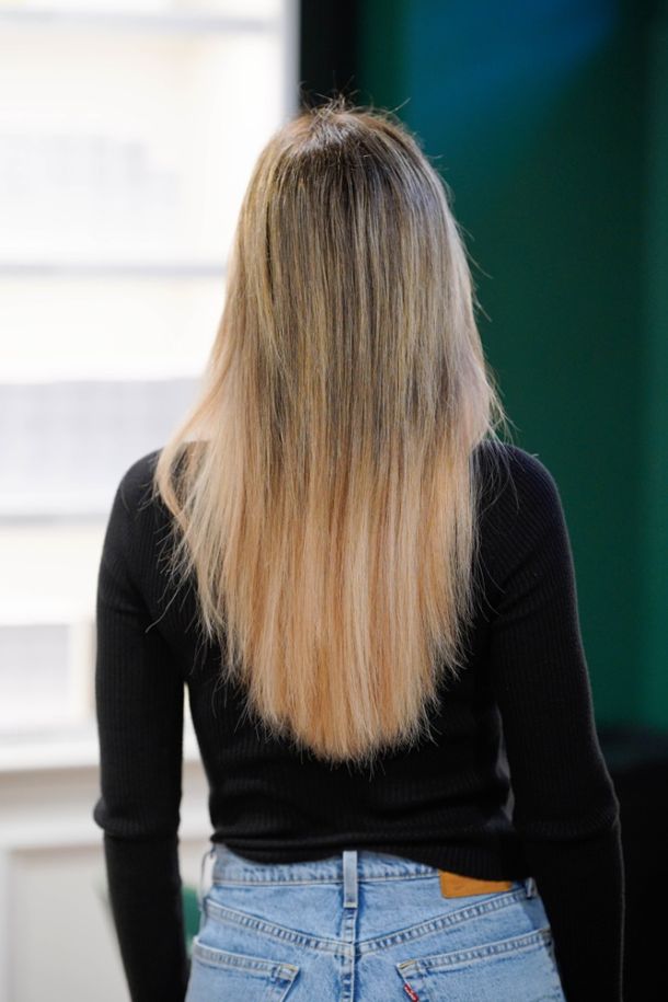 Prije bilo kakve koloracije, odlično je nanijeti Metal Detox koji neutralizira metale unutar vlasi i divno čisti kosu. Stručnjaci za kosu iz Kalmar salona, u dogovoru s klijenticom odabrali su L’Oréal Dia Light preljev, a nakon samog preljeva kosu su osvježili legendarnim Kérastase Fusio Dose tretmanom, koji dubinski hrani i obnavlja kosu.