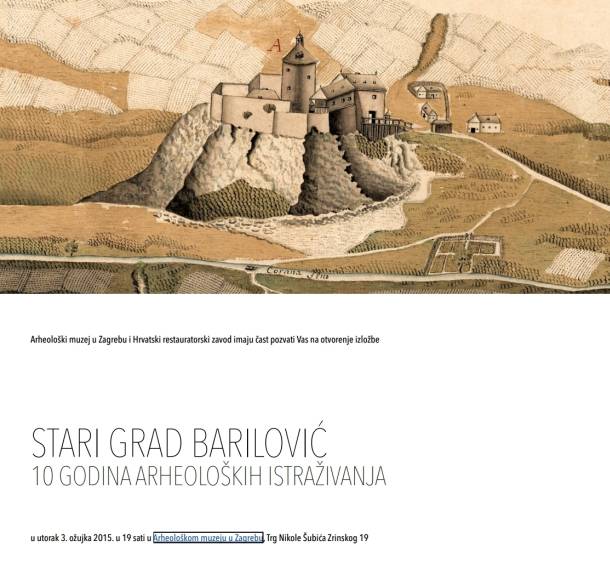 Izložbom se predstavljaju rezultati višegodišnjih arheoloških istraživanja Staroga grada Barilovića, koja se provode u sklopu konzervatorsko-restauratorskih radova i obnove.