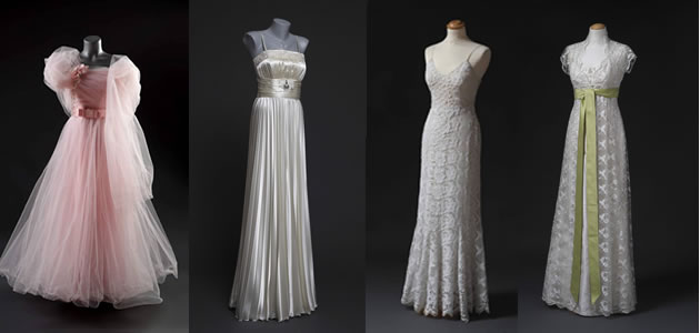 Dvije vjenčanice iz dvadesetih i tridesetih potvrđuju nove modne trendove. Prva iz 1925., duljine je ispod koljena, a druga iz 1930. i doseže do poda. Tu su i fotografije njihovih sretnih vlasnica.