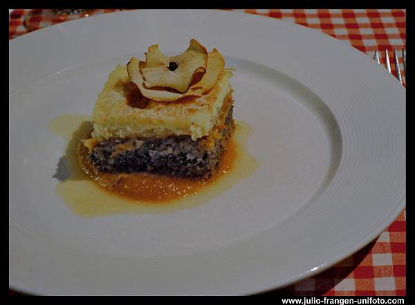 Vinarija Hažić se pobrinula da poluslatki Traminac iz 2012 izvrsno prati fantastičnu međimurska gibanica s kremom i čipsom od jabuke.