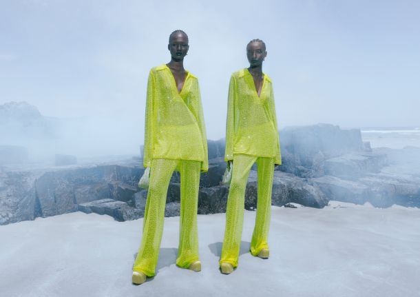 Ključni komadi sastoje se od niza mini haljina, s dva smaragdno-zelena i citrus-žuta komada izrađenih od recikliranog poliestera i pojačanih šljokicama izrađenim od recikliranih PET plastičnih boca, te kamenčićima i perlama izrađenim od recikliranih plastičnih polica i kutija.