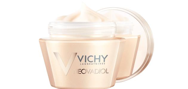 Pojava menopauze izaziva dehidraciju kože i gubitak njezine gustoće te slabi tkivo koje koži služi kao oslonac, a sve to uzrokuje uočljive promjene na jagodicama, crtama lica i vratu. Vichy je stvorio liniju proizvoda koja pruža učinkovit odgovor na proces starenja zrele kože i djeluje kao nadomjesni kompleks: Linija Neovadiol nadomjesni kompleks pruža optimalnu njegu za zrelu kožu pod utjecajem hormonalnih promjena te joj vraća gustoću, čvrstoću, blistav ten i osjećaj ugode. Neovadiol nadomjesni kompleks linija proizvoda uključuje naprednu obnavljajuću dnevnu i noćnu njegu koja koži osigurava udobnost i svježinu te komplementarno djelovanje na vidljive posljedice menopauze na kožu i napredni obnavljajući koncentrat Neovadiol, njega koja udružuje koncentrat za svježinu i koncentrat sa zlatnim mikro biserima za blistavu kožu. Linija Neovadiol također sadrži dva proizvoda za bogatiju njegu izrazito suhe kože: Neovadiol Magistral hranjivi balzam i Neovadiol Magisitral elixir- suho ulje visoke koncentracije, bazirani su na bogatom kompleksu vitalnih ulja za obnavljanje lipida te upotpunjuju Vichy anti-age liniju za zrelu kožu.